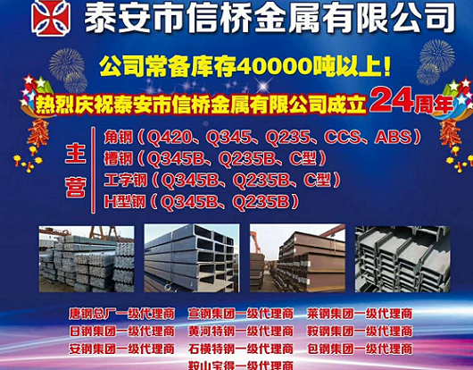 泰安市信橋金屬有限公司一家典型的線上、線下鋼鐵銷售企業(yè),在信橋,信譽(yù)至上貫穿始終;在信橋,足不出戶做銷售不再是空想;在信橋,逢節(jié)要賬已是過(guò)去;在信橋,一站式便利提貨成為現(xiàn)實(shí);在信橋,可以收獲事業(yè)與人生。